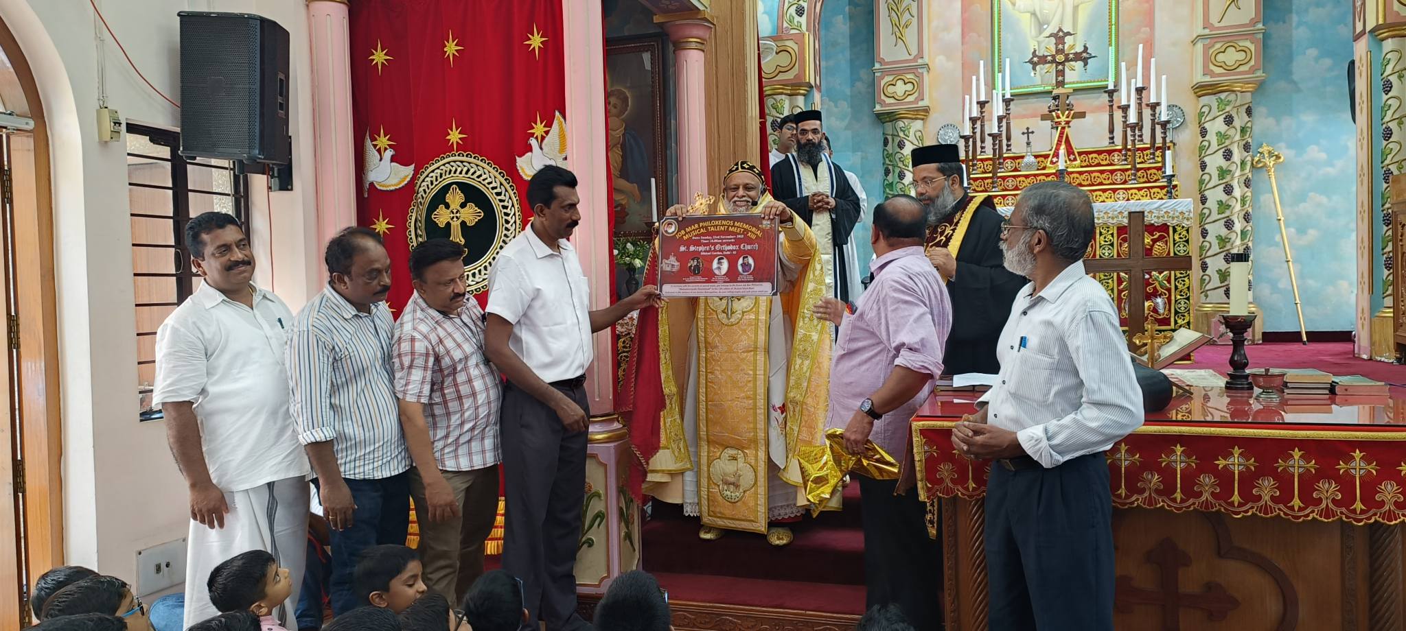 അനുസ്മരണ പ്രസംഗം റവ. പത്രോസ് കെ ജോയ് (വികാരി മാർ ഗ്രിഗോറിയോസ് ഓർത്തഡോക്സ് ഇടവക, ജനക്പൂരി), അനുമോദന സന്ദേശം നൽകുന്നത് റവ. ഫാ. സജി എബ്രഹാം ( മലങ്കര ഓർത്തഡോക്സ് ഡൽഹി ഭദ്രാസന സെക്രട്ടറി)എന്നിവർ പങ്കെടുക്കുന്നു. ജോബ് മാർ പീലക്സിനോസ് മെമ്മോറിയൽ സംഗീത പ്രതിഭ സംഗമം മത്സരത്തിന്റെ പോസ്റ്റർ പ്രകാശനം ഭദ്രാസന മെത്രാപ്പോലീത്ത അഭി. ഡോ. യൂഹാനോൻ മാർ ദിമെത്രിയോസ് തിരുമേനി നിർവഹിക്കുന്നു. ചെറിയാൻ ബേബി, രാജേഷ് ഡാനിയേൽ, ഫിലിപ്പ് ചാക്കോ, സാബു എബ്രഹാം, റവ. ഫാ. ബിനിഷ് ബാബു, ഇടവക വികാരി റവ.ഫാ. ജോയ്സൺ തോമസ്,ജയ്മോൻ ചാക്കോ, സി.ഐ ഐപ്പ് എന്നിവർ സമീപം.